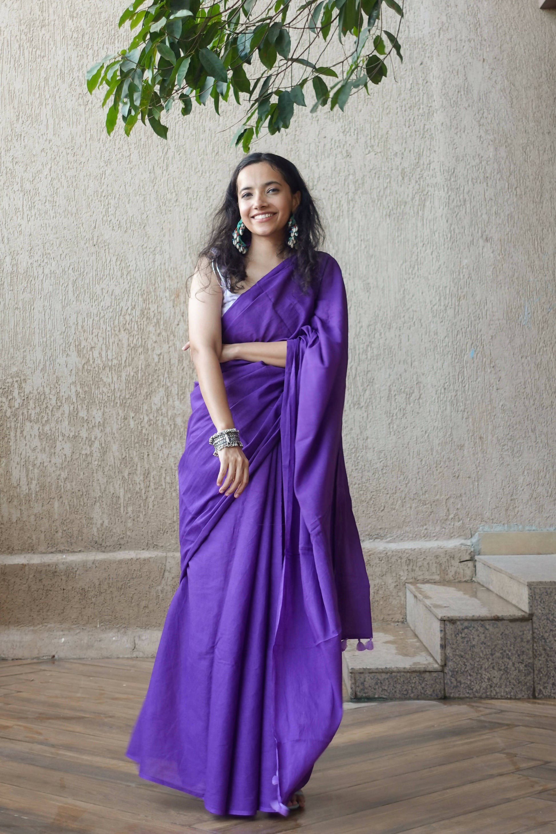 The festive sparkles shine bright in her eyes as she dresses up in a saree that’s simple enough to suit her tastes and festive enough to complement her mood. Shine on this festival season in our plain mulmul sarees accessorised with tassels. Pair it with a belt or traditional jewellery for the perfect Diwali party look.