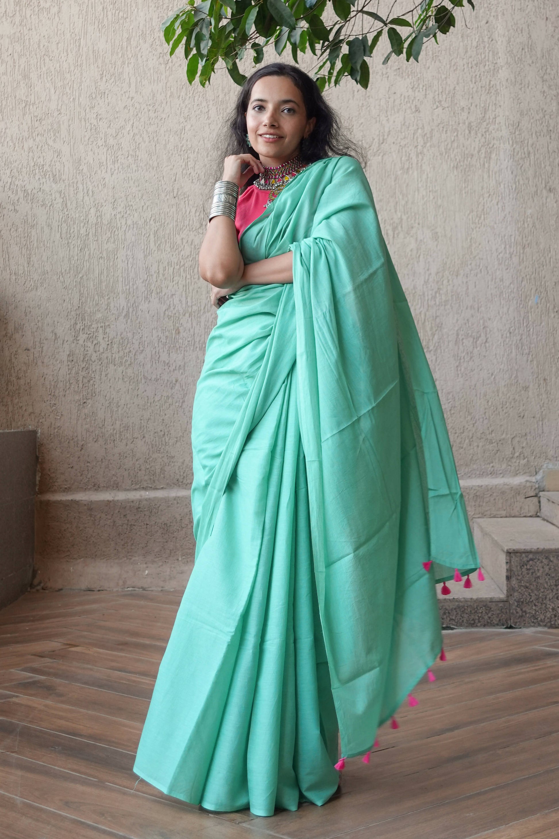 Hand Dyed Tasseled Mulmul Cotton Saree