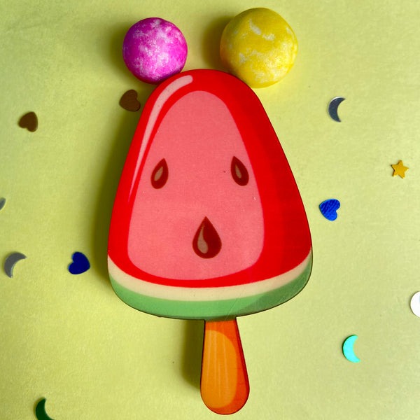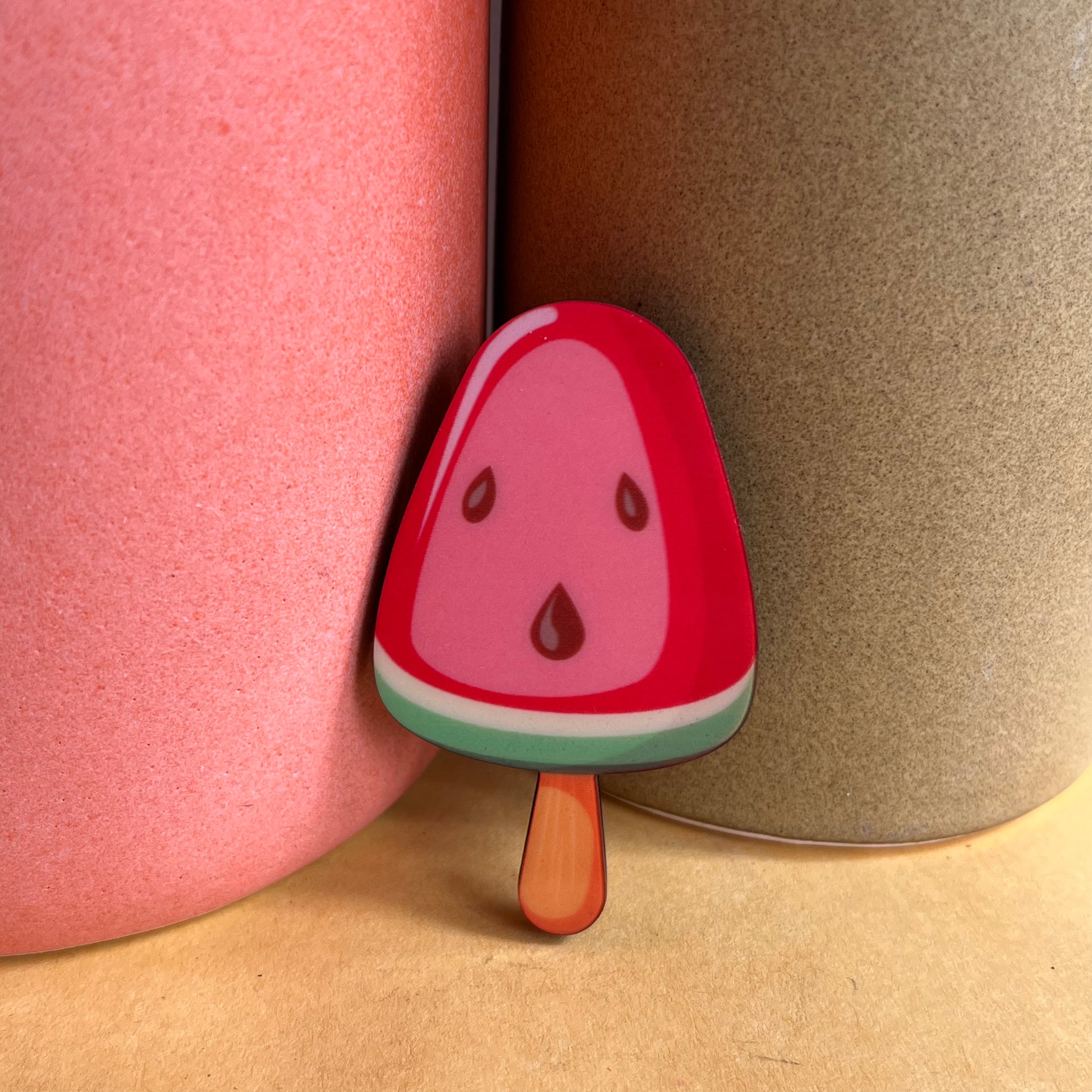 Magnetic freshness and watermelon popsicle vibes on the fridge.