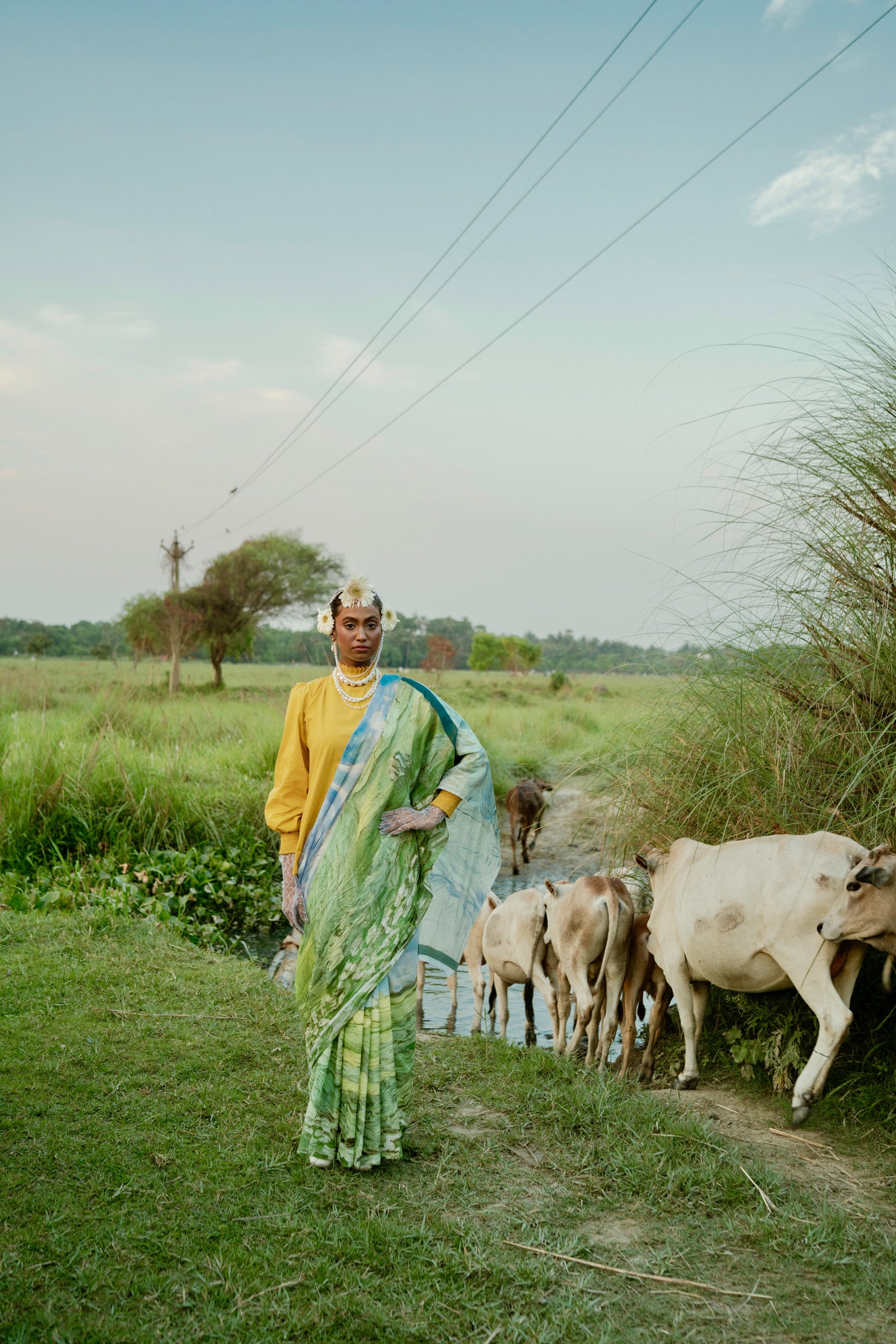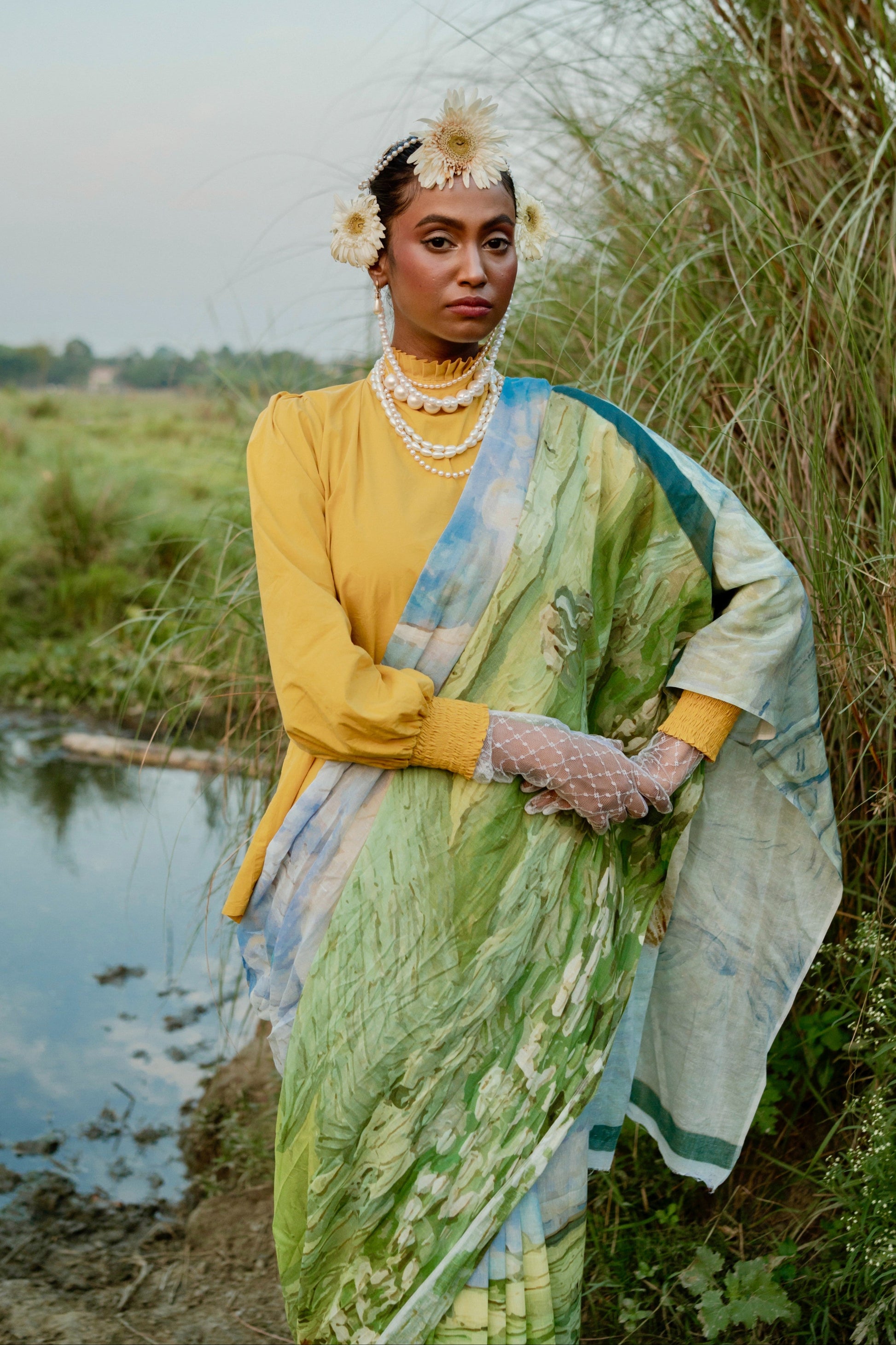 Wheat Field x Van Gogh's Self Portrait Saree Mul Cotton Saree