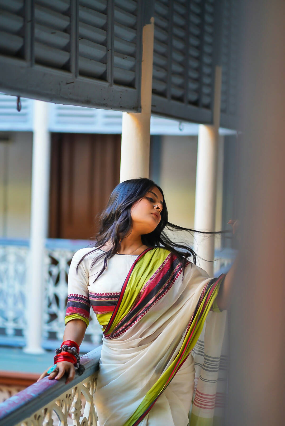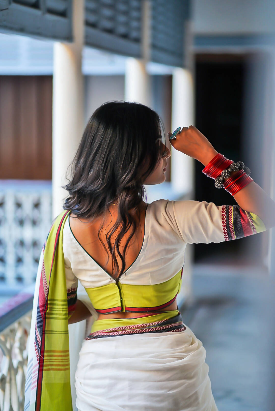 Materials: Extremely Soft Handwoven cotton blouse and has lining for both body and sleeves