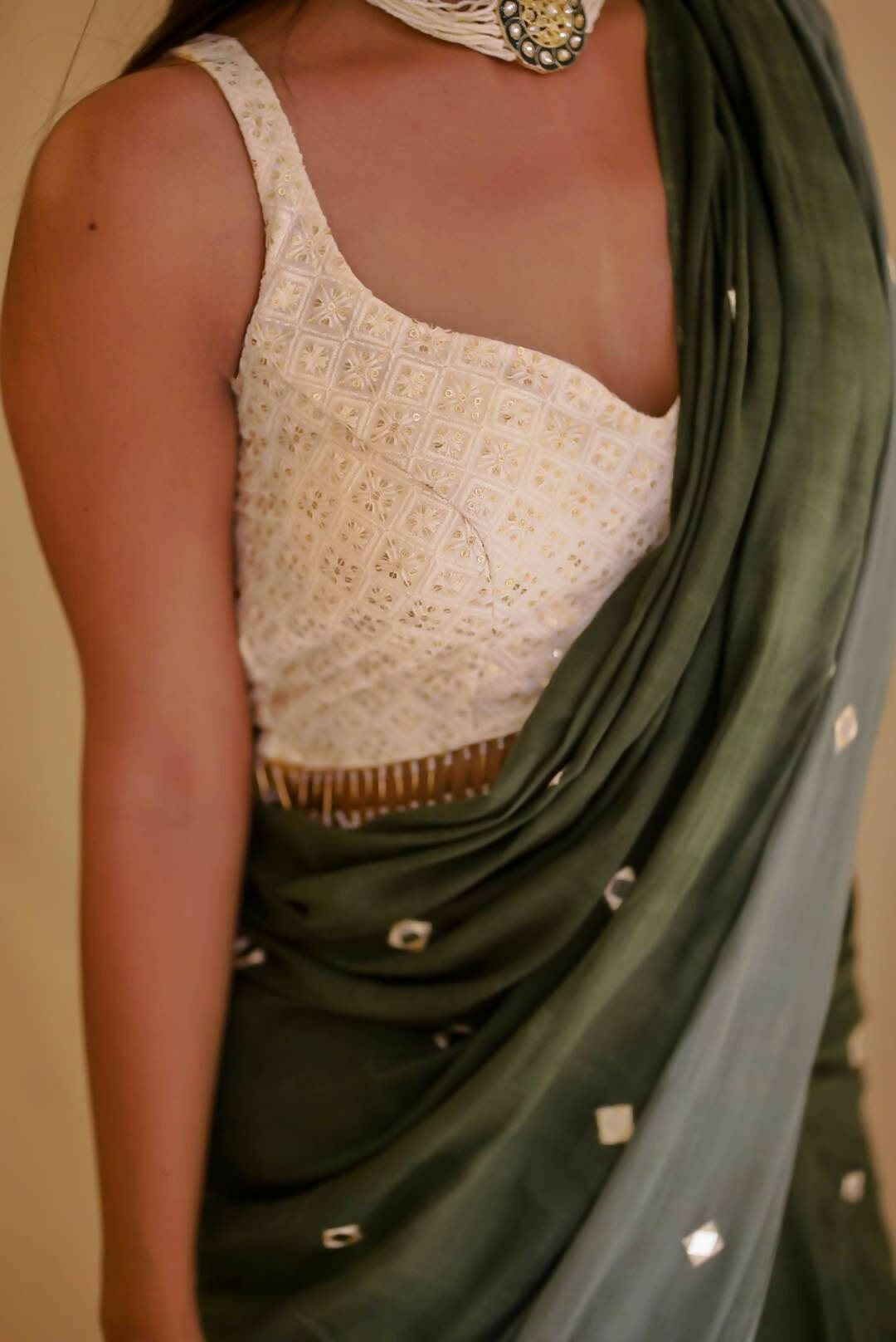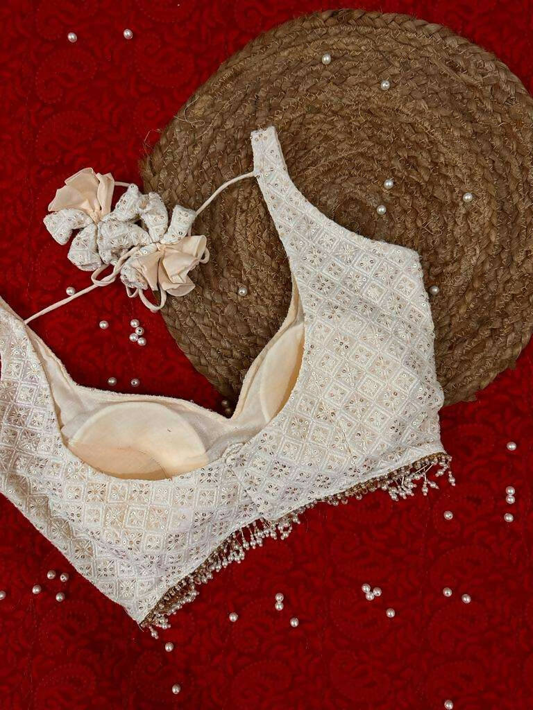 Elegantly designed to complement any saree, this blouse is a timeless fusion of tradition and style. Pair it with a monotone saree or go all over by pairing it with a contrast saree. This one will surely will be a statement piece in your wardrobe.