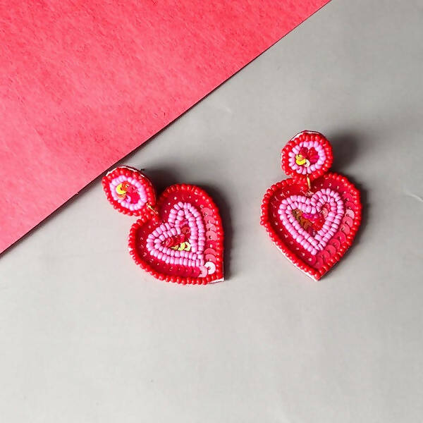 Unironically named so, there is everything to love about our LOVE-ly earrings! Y2K fashion is the come-back of retro fashion with a GenZ twist, and we're keeping up with the trend so that your fashion stays up-to-date! Specially designed for our live-sick girlies, these feature a sort of heart-ception, with rings of heart alternating between glitzy sequins, and opaque beads of pink and red. Our light-weighted Y2Love? earrings are most compatible with bustier dresses, mini skirts, crop tops, bell bottoms or sleeves, bobby printed clothing.