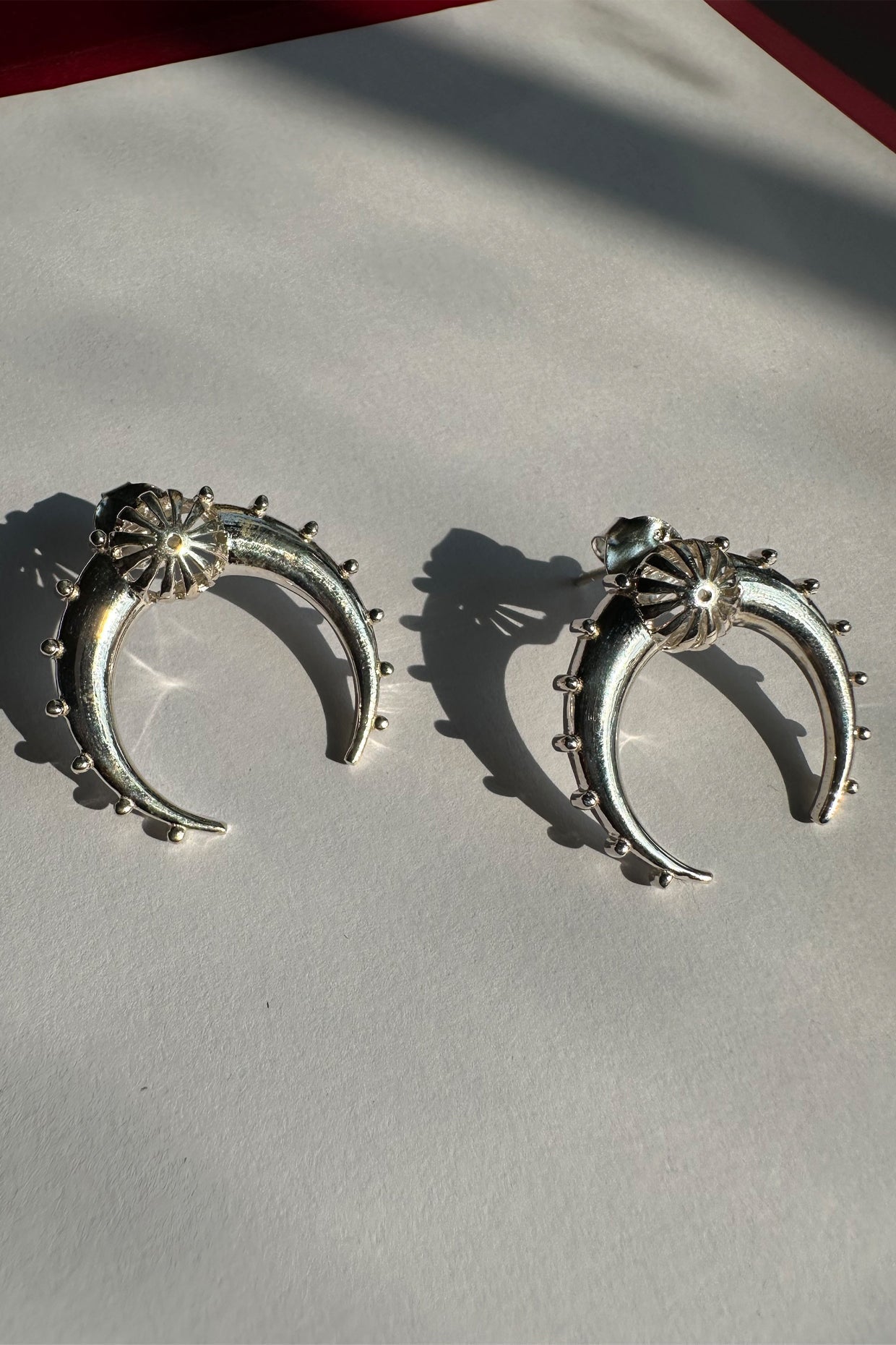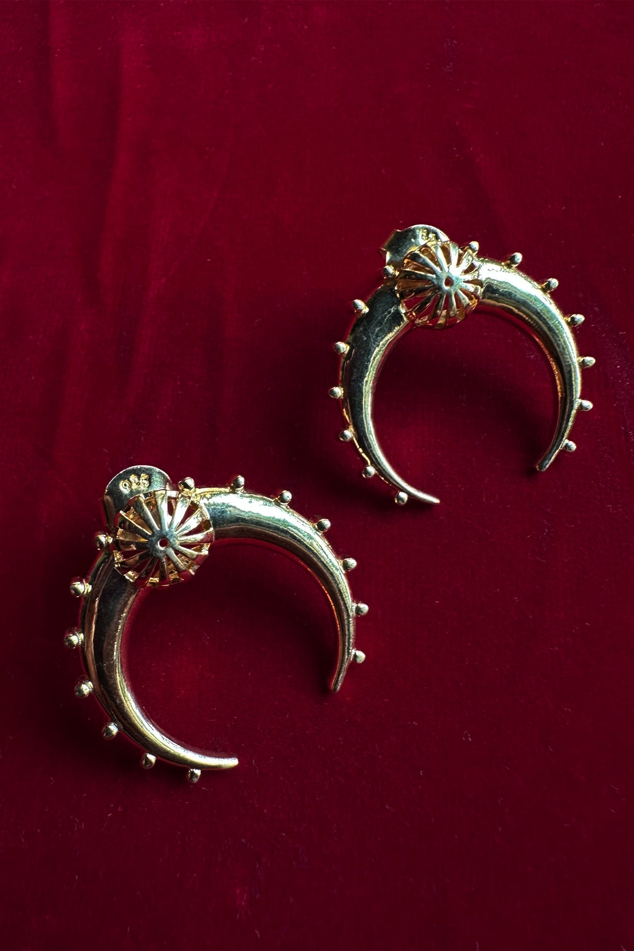 Shaped like a warrior’s shield, these hoop studs stand as symbols of protection and resilience. The dotted details act as talismans, warding off negativity and surrounding you with strength. A bold yet timeless piece for those who carry courage in their hearts.
