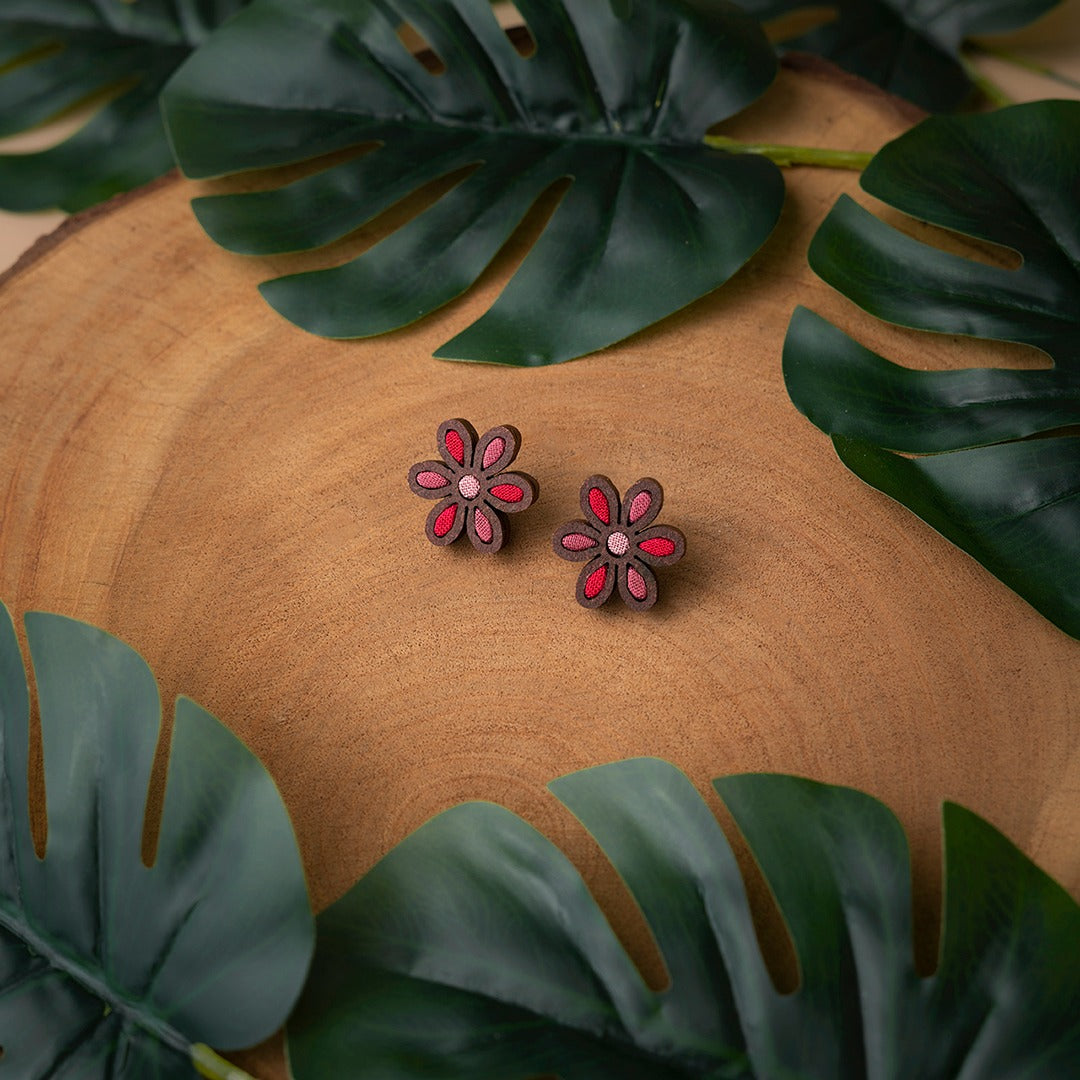 Introducing our exquisite wooden earrings, meticulously handcrafted with love and care. Each piece is adorned with vibrant fabric, adding a touch of elegance and uniqueness to your style. The unique design and lightweight feel make them comfortable to wear all day long. Add a touch of elegance to your outfit with these beautiful handmade earrings.