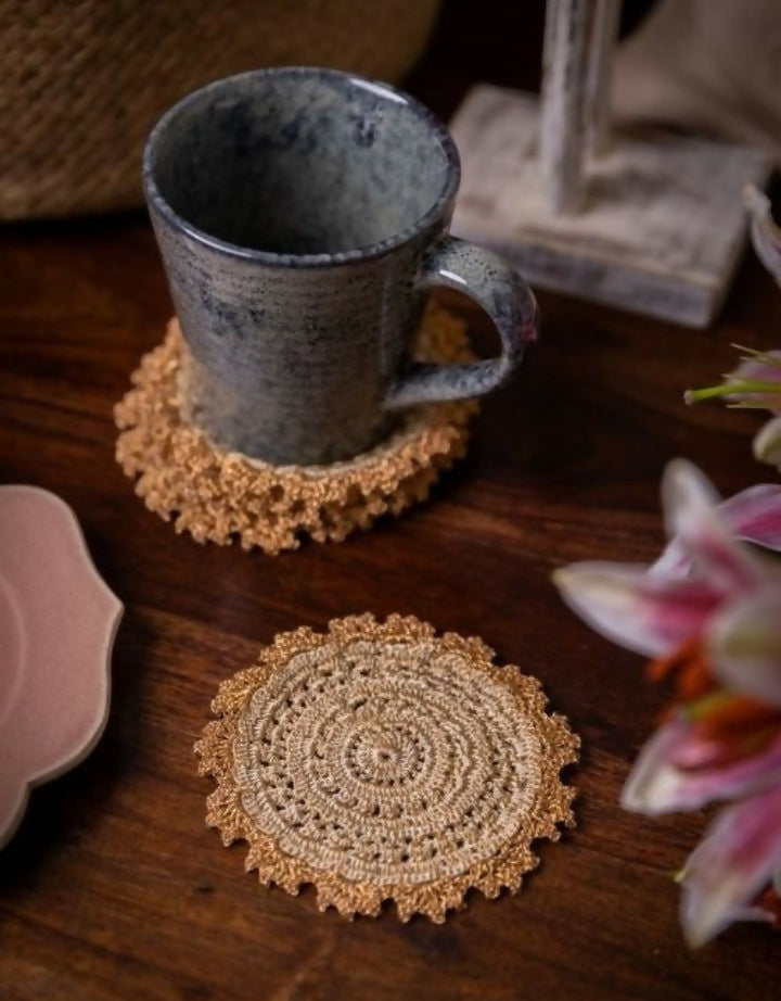 It's about our 'beautifully' crafted art by our 'beautiful' women artisans from Gaya with 'beauty' in our intent to 'beautify' your homes. A blend of both aesthetic and functionality, our artisan made coasters are a staple for at-home get together. In a set of six, they will keep your surfaces safe and clean, while enhancing the look of the decor.