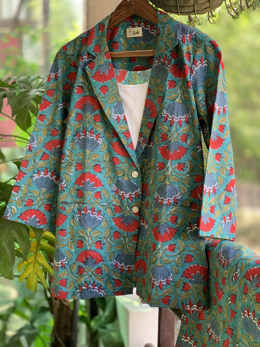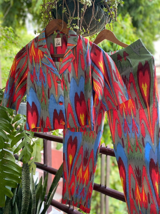Colour Pop Ikkat Cropped Blazer + Pants Set