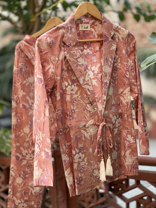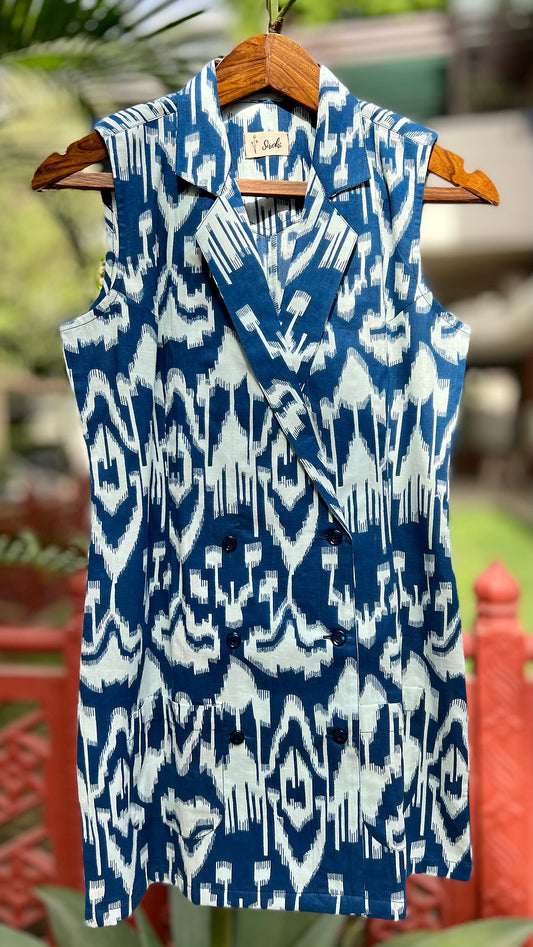 Deep Blue Ikat Double Breasted Long Blazer Set