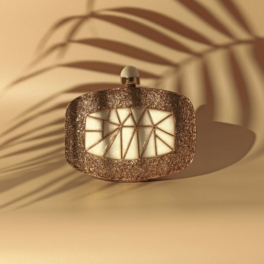 Naira Mother of Pearl Clutch with Brass Embellished Handle