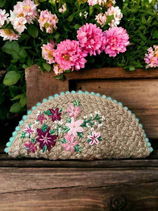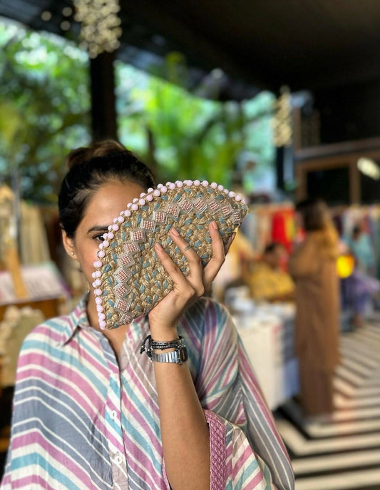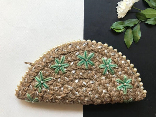 Naked Jute with Bugle Beads Half Moon Clutch