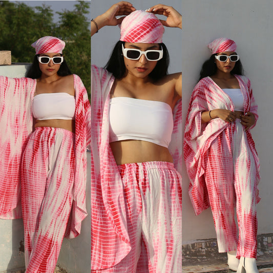 • Fuchsia Shibori Shrug Trouser Set