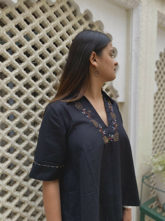 Black Cotton Hand Embroiderd Coord Set