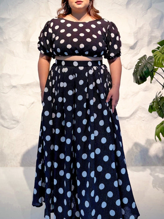 Sunniera Polka Dot Co-ord Set with Kantha Embroidery
