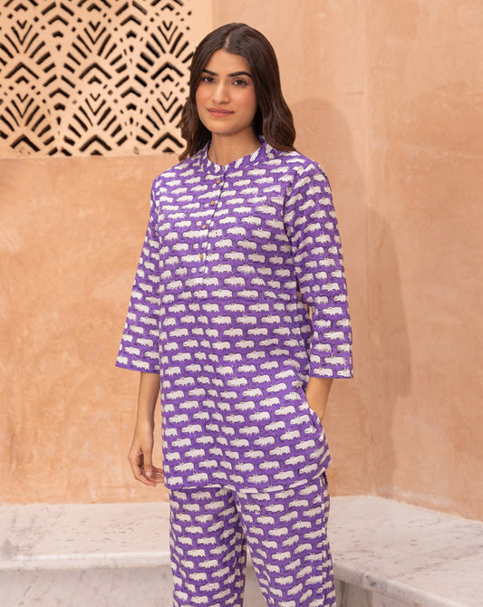 Happy Hippos Short Kurta Pyjama - Soft Cotton Co-ord Set