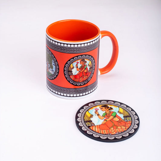 Paripatra Pattachitra Mug with Coaster - Yellow