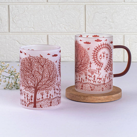 Ethnic Warli Art Frosted mugs - Set of 4