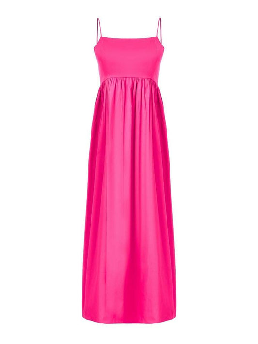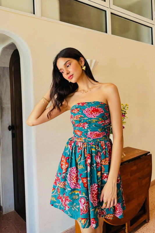 Crimson Red Floral Hand-Printed Cotton Maxi Dress with Pocket