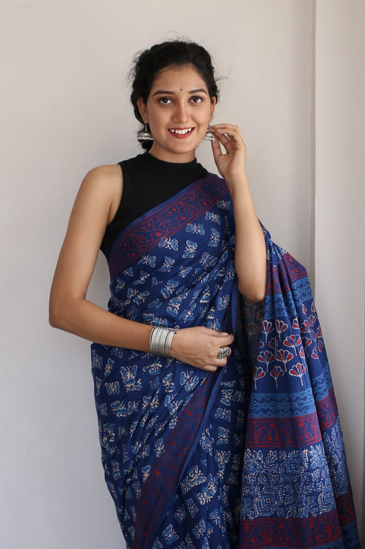 Sold outButterflies Hand Block Print Saree