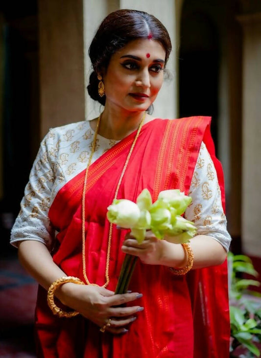 Mon Niye Begumpuri Cotton Red Saree