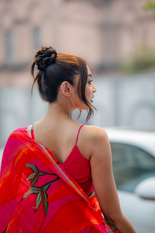 Hema Malini's Mallika - Lotus Print Mul Cotton Saree