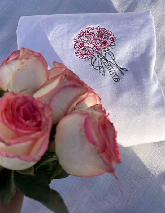 Rose Bunch Embroidered White Sweatshirt