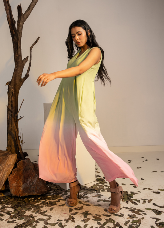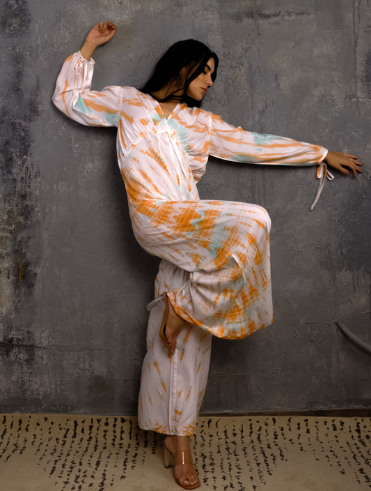 Yellow Cosmo Silk Bow-Tie Jumpsuit