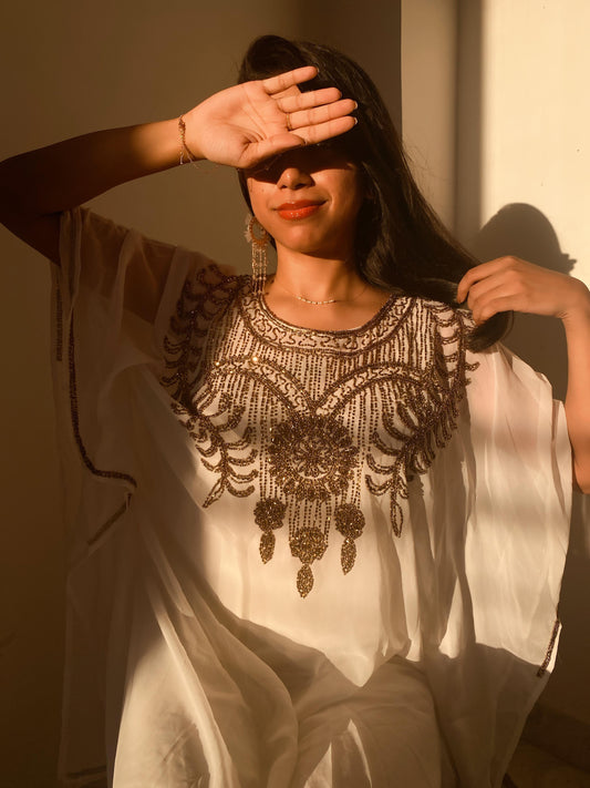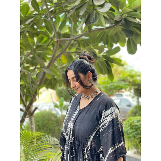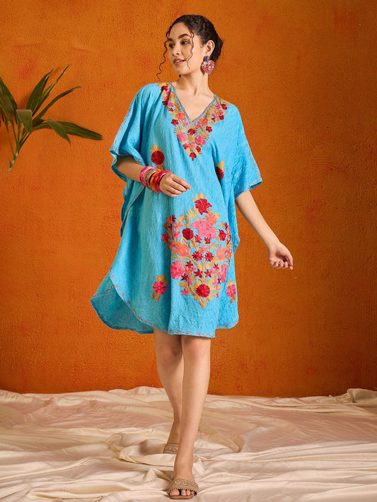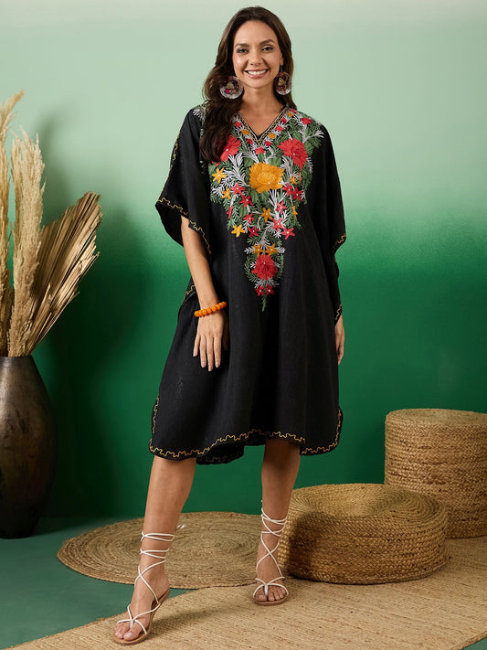Jade Black Kashmiri Embroidered Summer Kaftan - Short