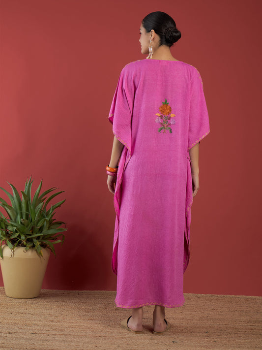 Bubblegum Pink Aari Embroidered Kashmiri Kaftan - Long