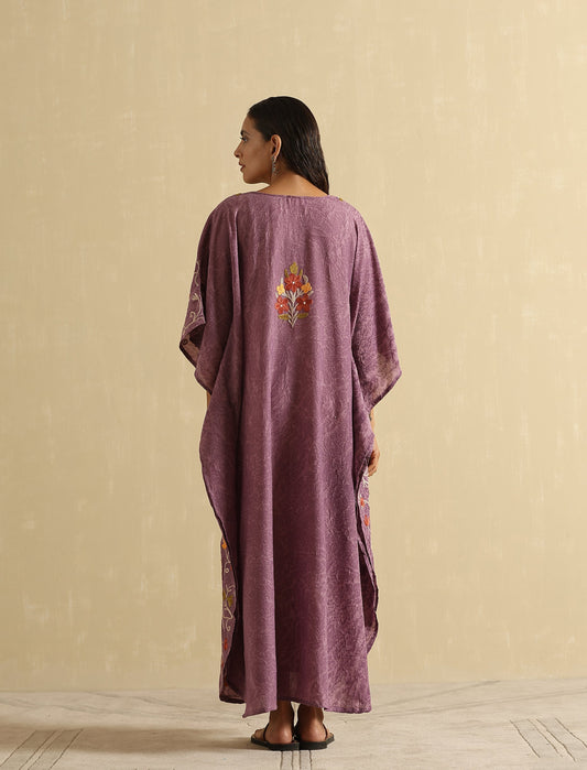 Mauve Aari Embroidered Kashmiri Long Kaftan