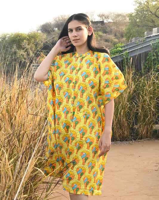 Agar Magar Hand Block Printed Cotton Kaftan Shirt