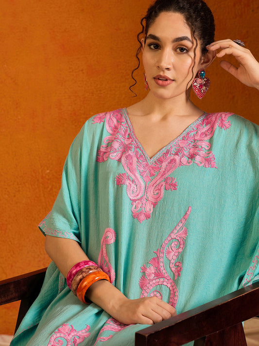 Arctic Blue Kashmiri Summer Kaftan - Long