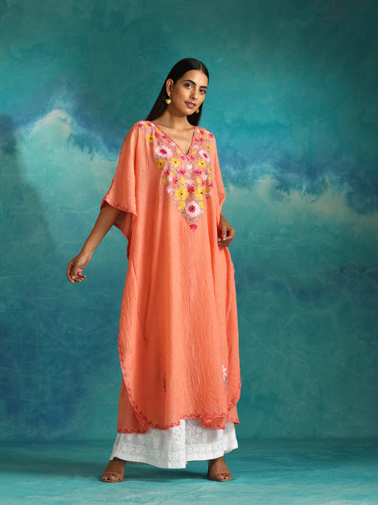 Creamy Peach Kashmiri Kaftan