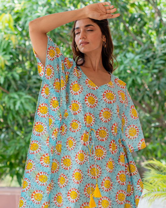 SunBurn Hand Block Printed Cotton Kaftan