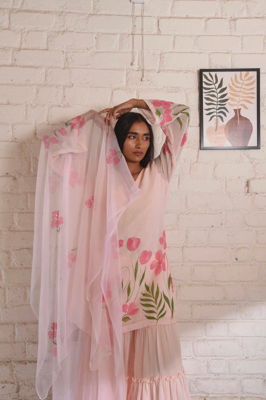 Handpainted Kyari Georgette Sharara Set in Blush