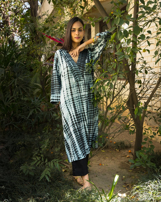 Monochrome Tie Dye Cotton Kurta and Pant Set