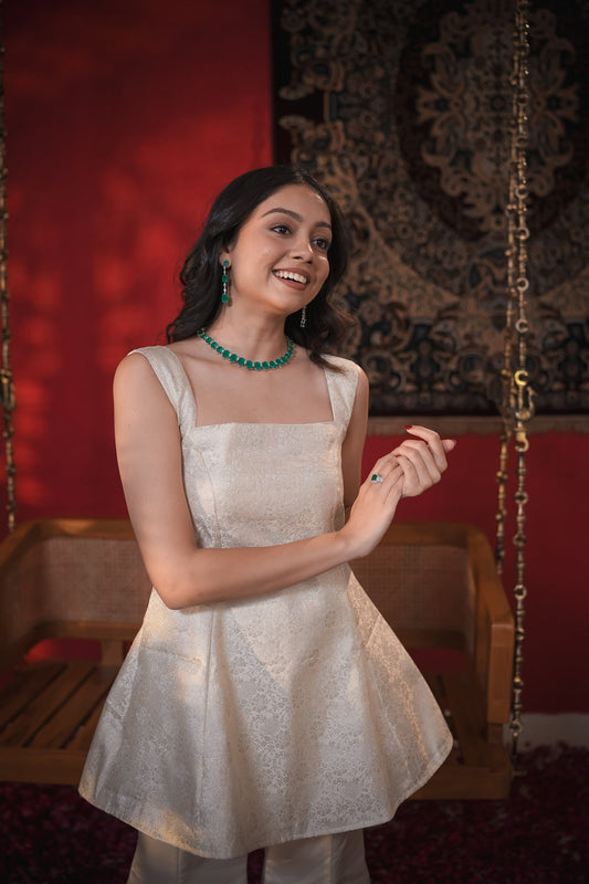 Aisha White Kurti & Bell Bottom Set
