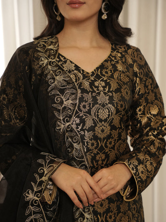 Resha Banarasi Suit Set with Aari Embroidered Dupatta
