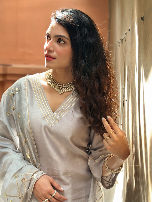 Silver Frost Ensemble with Gota Patti Kurta Set