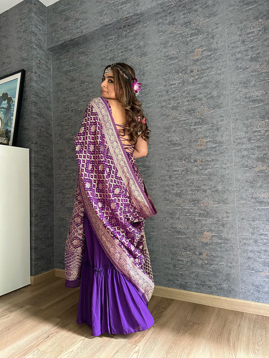 Bandhej Purple Sharara Set