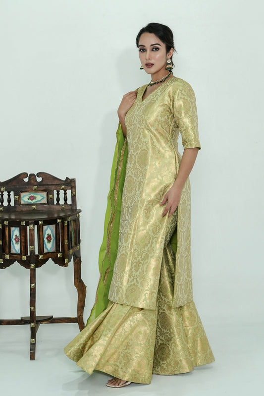 Meera Banarasi Silk Brocade Gharara Set - Green