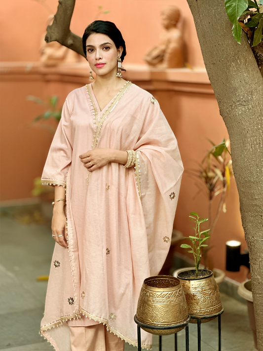 Peach Whisper with Golden Accents Kurta Set