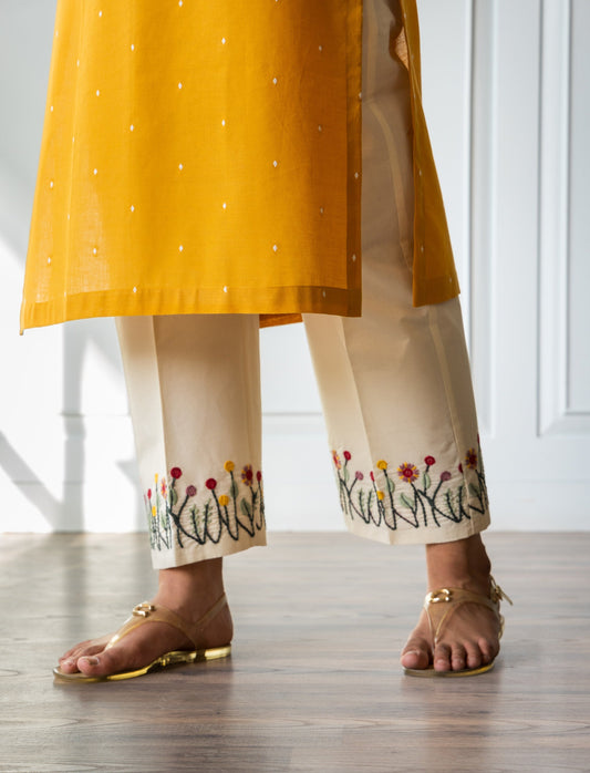 Honey Yellow Embroidered Kurta Pants Set