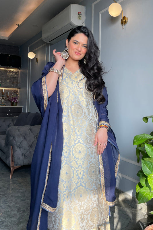 Meera Banarasi Silk Brocade Gharara Set - Grey