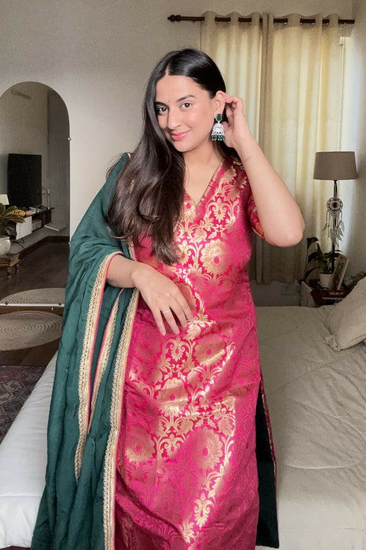 Meera Banarasi Silk Brocade Gharara Set - Pink