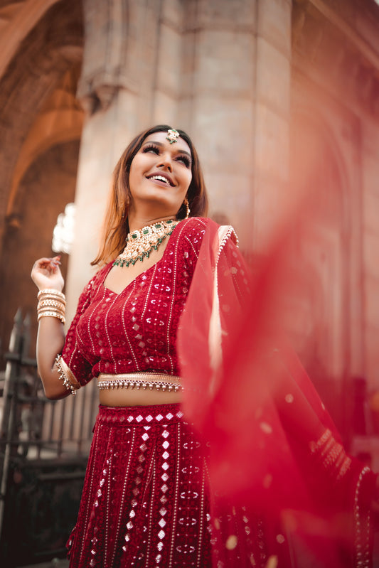 Maroon Chikankari and Sequin Lehenga