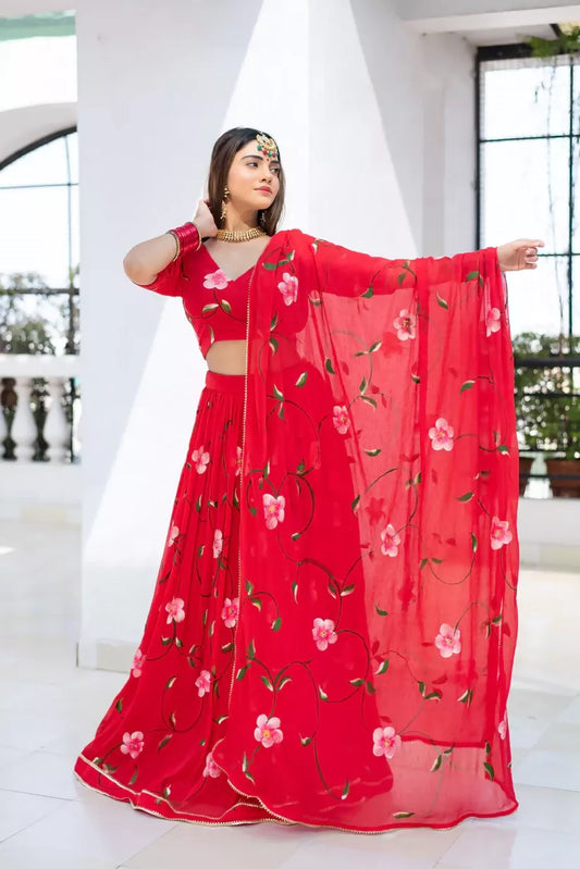 Red Chiffon Lehenga with Blouse & Dupatta