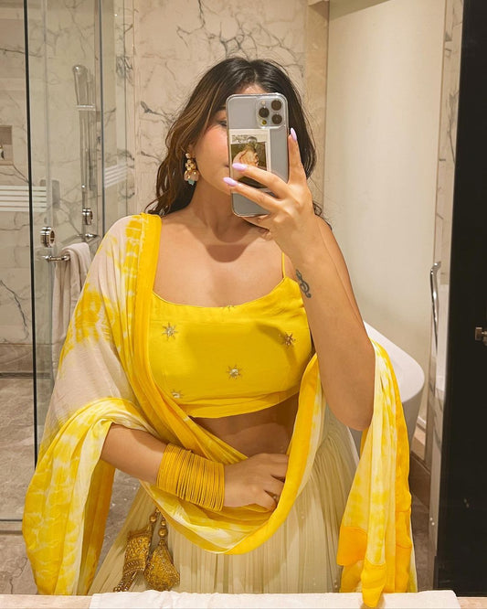 Elegant Haldi Lehenga Embellished with Intricate Zari Work