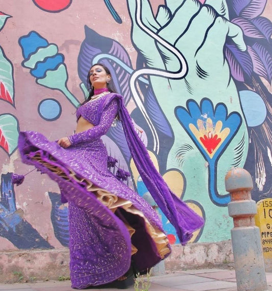 Lucknow Chikankari Purple Lehenga