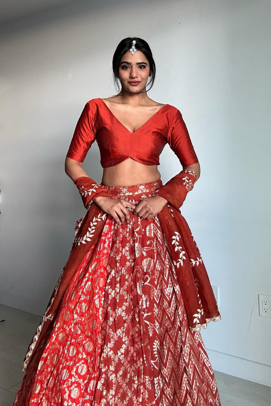 Rust Chikankari Lehnga with Sequin Work