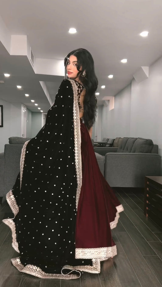 Hand Embroidered Velvet Lehenga Set